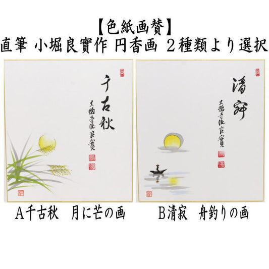〇【茶器/茶道具 色紙画賛】 直筆 千古秋 月に芒の画 河村和布己画又は清寂 舟釣りの画 小堀良作 円香画 2種類より選択