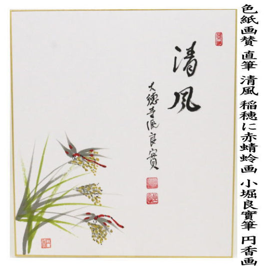〇【茶器/茶道具 色紙画賛】 直筆 清風 小堀良實筆 稲穂に赤蜻蛉画 円香画