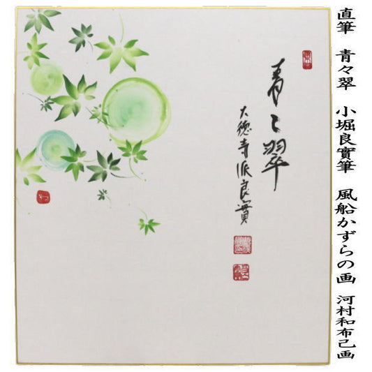 【茶器/茶道具 色紙画賛】 直筆 青々翠 小堀良實筆 風船かずらの画 河村和布己画