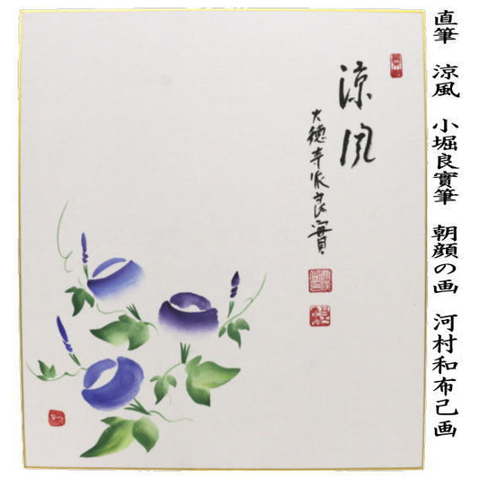 【茶器/茶道具 色紙画賛】 直筆 涼風 小堀良實筆 朝顔の画 河村和布己画