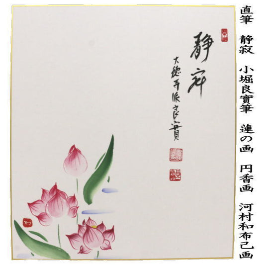 【茶器/茶道具 色紙画賛】 直筆 静寂 小堀良實筆 蓮の画 河村和布己画