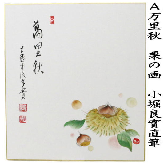 【茶器/茶道具 色紙画賛】 直筆 万里秋 栗の画又は万里秋 秋の七草の画 小堀良實筆 2種類より選択 (前大徳寺派)