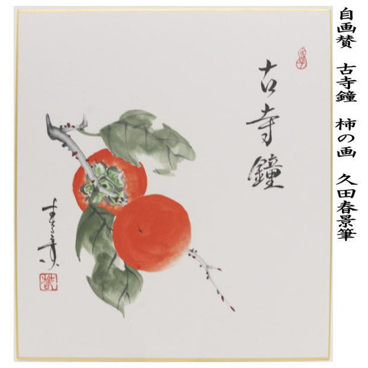 【茶器/茶道具 色紙画賛】 自画賛 古寺鐘 柿の画 久田春景筆
