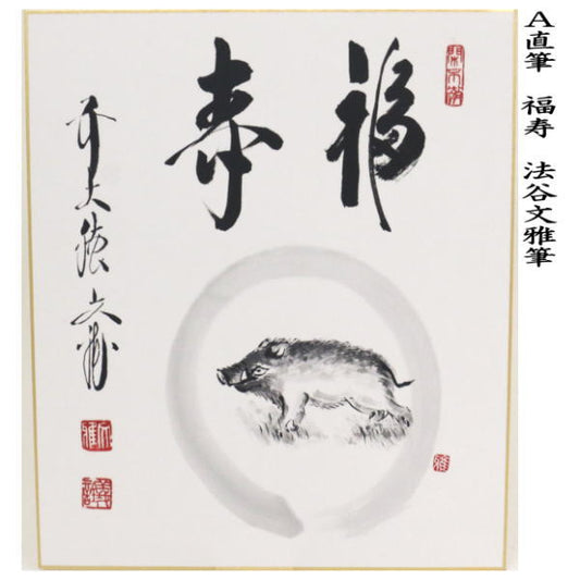 【茶器/茶道具 色紙画賛 干支「亥」】 直筆 干支色紙 福寿又は好日 法谷文雅筆 亥の画