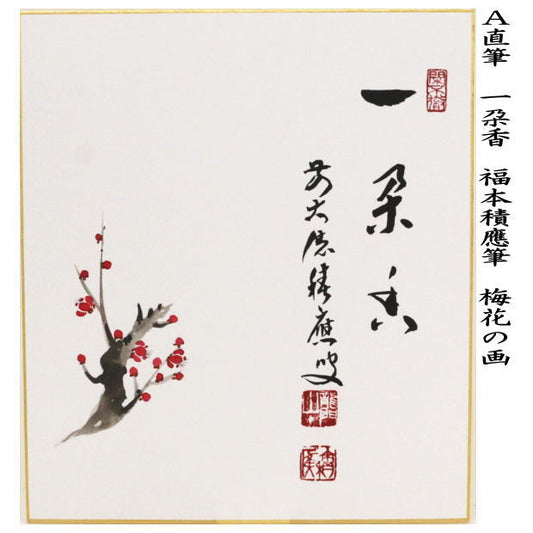 【茶器/茶道具 色紙画賛】 直筆 一朶香 梅花の画又は千歳春 桃花の画 福本積應筆