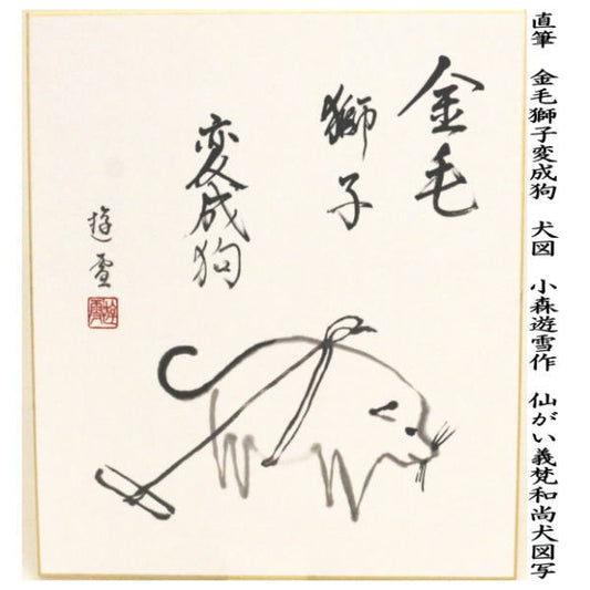 【茶器/茶道具 色紙画賛 干支「戌」】 干支色紙画賛 直筆 金毛獅子変成狗 犬図 小森遊雪画 仙がい義梵和尚犬図写し