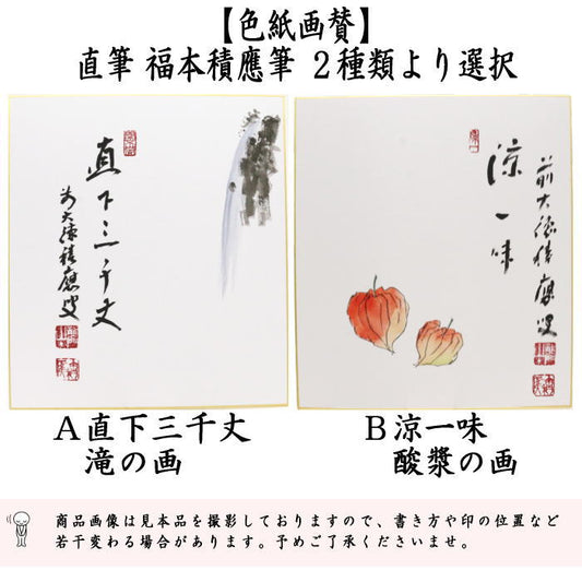 【茶器/茶道具 色紙画賛】 直筆 直下三千丈 滝の画又は涼一味 酸漿の画(ほおずき) 福本積應筆