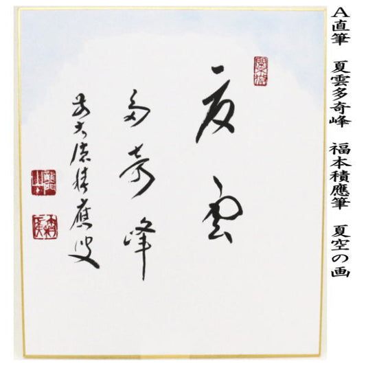 【茶器/茶道具 色紙画賛】 直筆 夏雲多奇峰 夏空の画又は涼風 夏空の画又は涼風 朝顔の画 福本積應筆