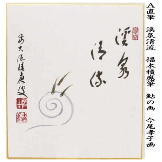 【茶器/茶道具 色紙画賛】 直筆 溪泉清流 鮎の画又は風月清 曳舟の画又は行雲流水 山河の画 福本積應筆 今尾孝子画