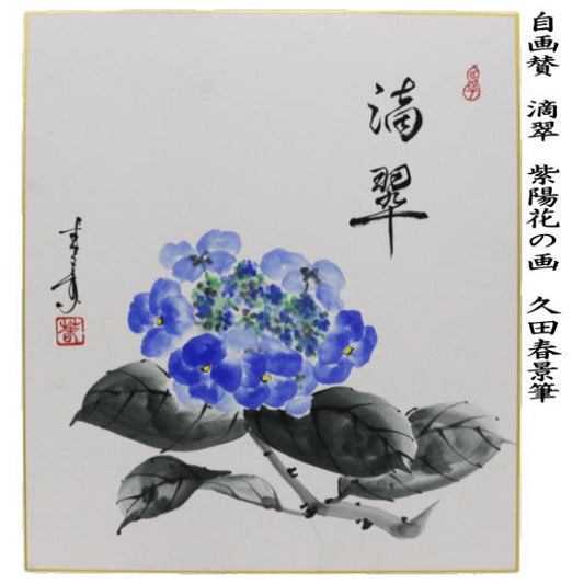 【茶器/茶道具 色紙画賛】 自画賛 滴翠 紫陽花の画 久田春景筆