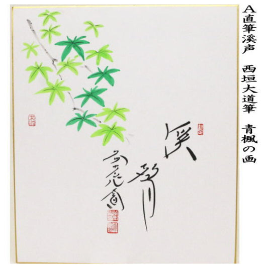 【茶器/茶道具 色紙画賛】 直筆 溪声 青楓の画又は筏流し 西垣大道筆