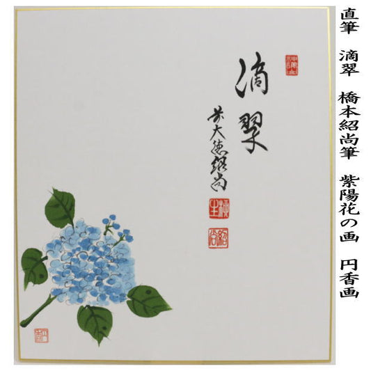 【茶器/茶道具 色紙画賛】 画賛 滴翠 橋本紹尚筆(柳生紹尚筆) 紫陽花の画 円香画