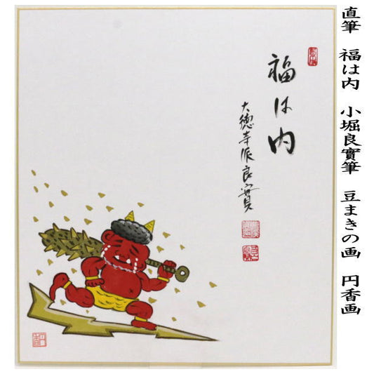 〇【茶器/茶道具 色紙画賛 節分】 直筆 福は内 小堀良實筆 豆まきの画 円香画