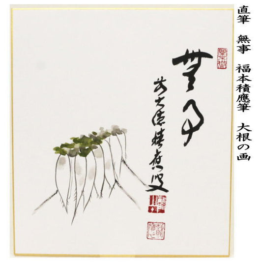 【茶器/茶道具 色紙画賛】 直筆 無事 福本積應筆 大根の画