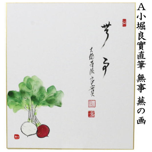 〇【茶器/茶道具 色紙画賛】 直筆 無事 小堀良實筆 蕪の画又は無事 小堀良實筆 大根の画又は無事 橋本紹尚筆(柳生紹尚)大根の画