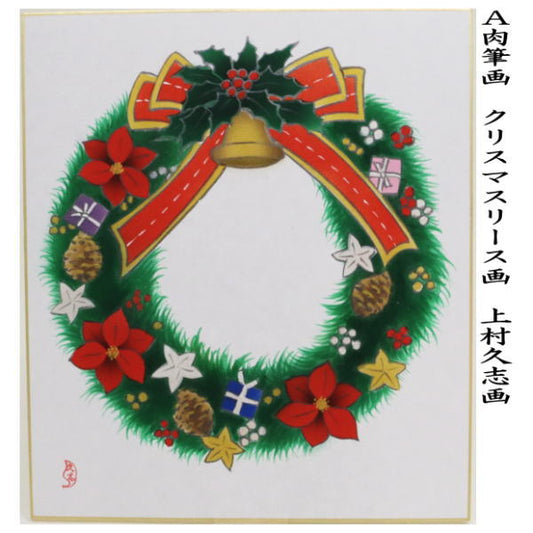 【茶器/茶道具 色紙 クリスマス】 肉筆画 クリスマスリース画 上村久志画 2種類より選択