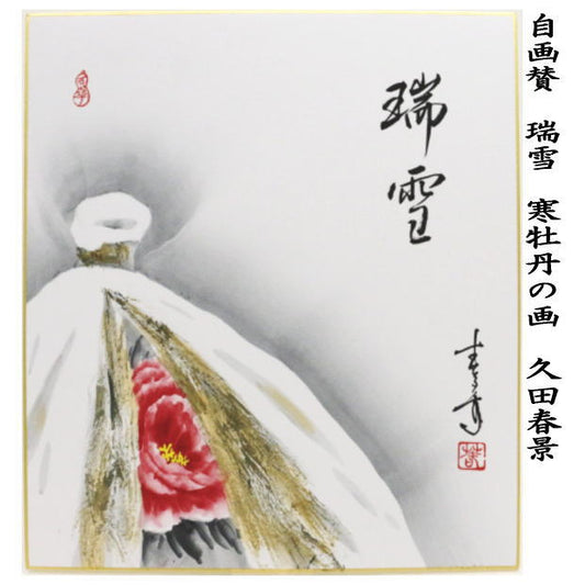 【茶器/茶道具 色紙画賛】 自画賛 瑞雪 寒牡丹の画 久田春景筆
