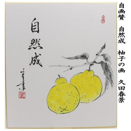 【茶器/茶道具 色紙画賛】 自画賛 自然成 柚子の画 久田春景筆