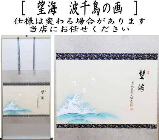 【茶器/茶道具 掛軸(掛け軸)】 横軸画賛 望海 橋本紹尚筆(柳生紹尚) 波千鳥の画