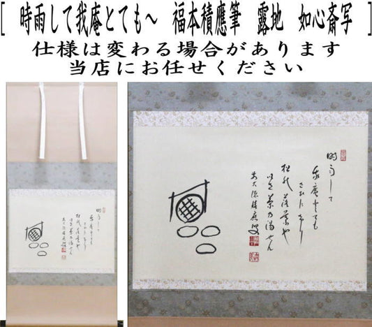 【茶器/茶道具 掛軸(掛け軸)】 横軸自画賛 時雨して我庵とても~ 福本積應筆 露地 如心斎写し