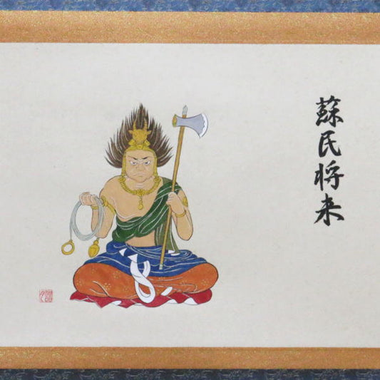 【茶器/茶道具 掛軸(掛け軸)干支「丑」】 横物軸 干支掛軸 牛頭天王の画 蘇民将来 村田譜月画 (干支牛 御題実)