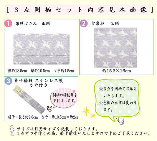 【茶器/茶道具 入門セット(初心者用/お稽古用)】 入門者裏千家6点セット 早雲寺文台裂 龍村美術織物裂使用 (帛紗 正絹・楊子 ステンレス製・懐紙 上)