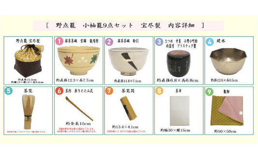 【茶器/茶道具 野点籠(野立籠)/野点セット(野立セット)】 小袖籠9点セット 大 宝尽裂