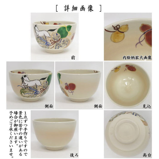 ☆☆【茶器/茶道具 抹茶茶碗 干支「午」】 干支茶碗 色絵茶碗 馬九いく 八木海峰作 (干支午 御題明) (干支 午・馬・うま)