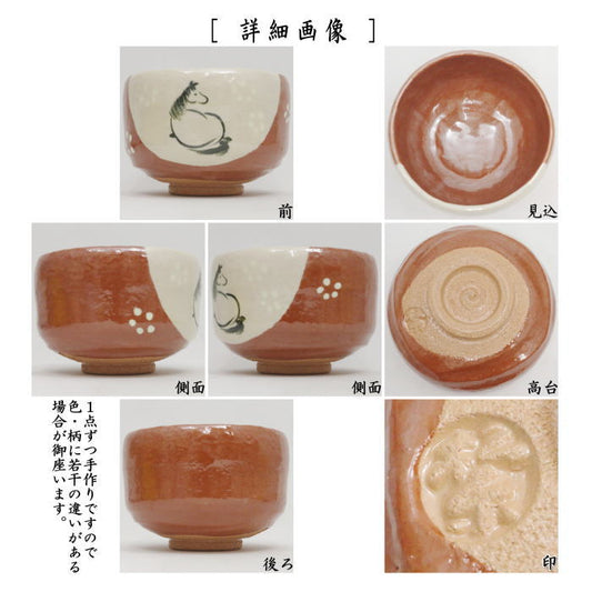 【茶器/茶道具 抹茶茶碗 干支「午」】 干支茶碗 紅安南 午玩具 楽山窯 (干支午 御題明)(干支 午・馬・うま)