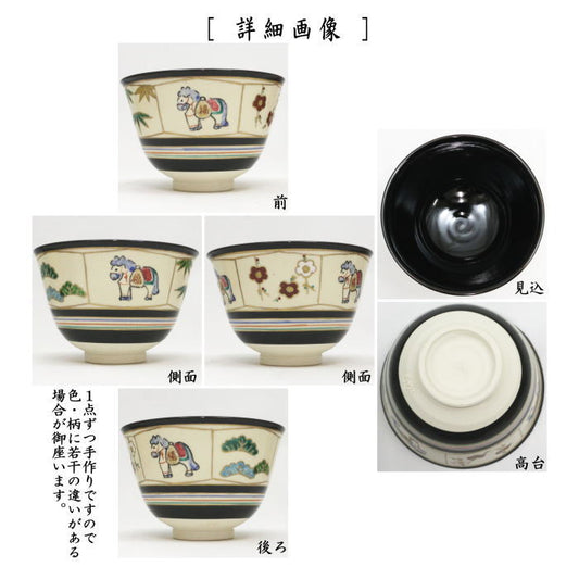 ☆☆【茶器/茶道具 抹茶茶碗 干支「午」】 干支茶碗 飾馬に松竹梅 杣山契月作 (干支午 御題明) (干支 午・馬・うま・絵馬)