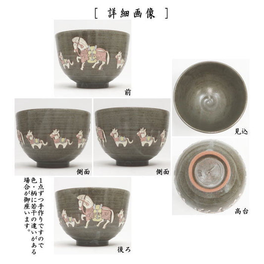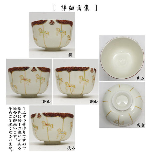 ☆☆【茶器/茶道具 抹茶茶碗 干支「午」】 干支茶碗 回転木馬 花月窯 (干支午 御題明) (干支 午・馬・うま)