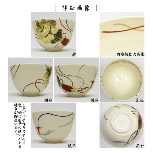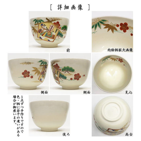 ☆☆【茶器/茶道具 抹茶茶碗 御題「明」】 御題茶碗 仁清写し 神楽鈴 今岡都作 (干支午 御題明) (お題明・勅題明)