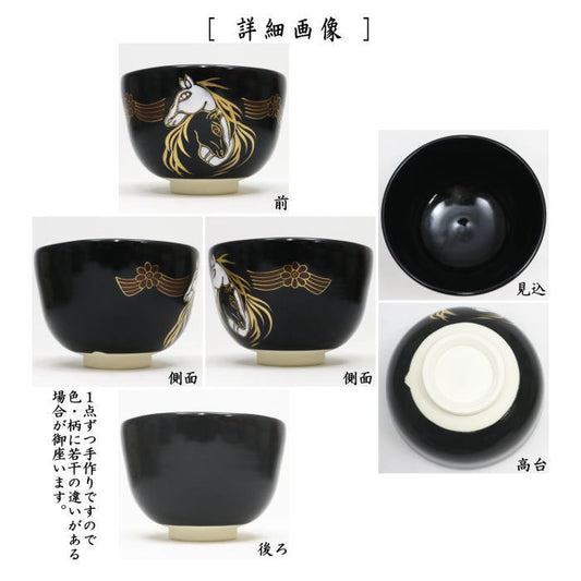 〇☆☆【茶器/茶道具 抹茶茶碗 干支「午」】 干支茶碗 馬九いく 内左馬の字 暁楽窯 (干支午 御題明) (干支 午・馬・うま)