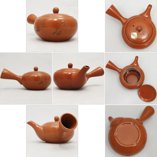 [Teapot] Red clay, plum, belt net, approx. 350ml