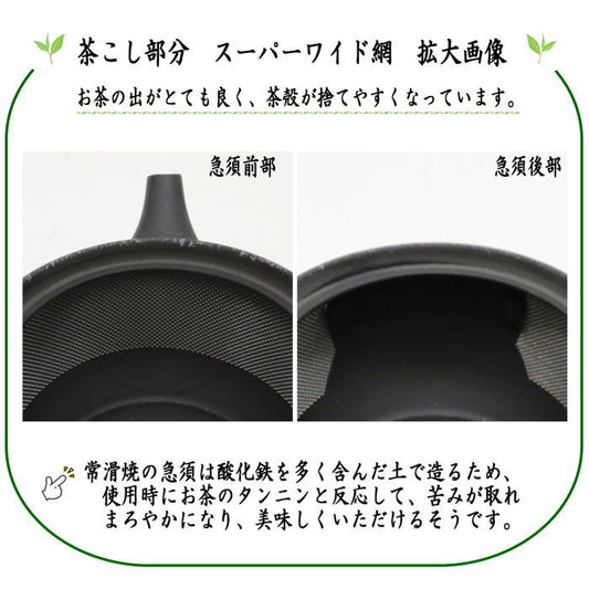 〇 [Teapot] Tokoname ware (Tokoname ware), black, super wide mesh, shelf cut, approx. 360ml (20), made in Japan