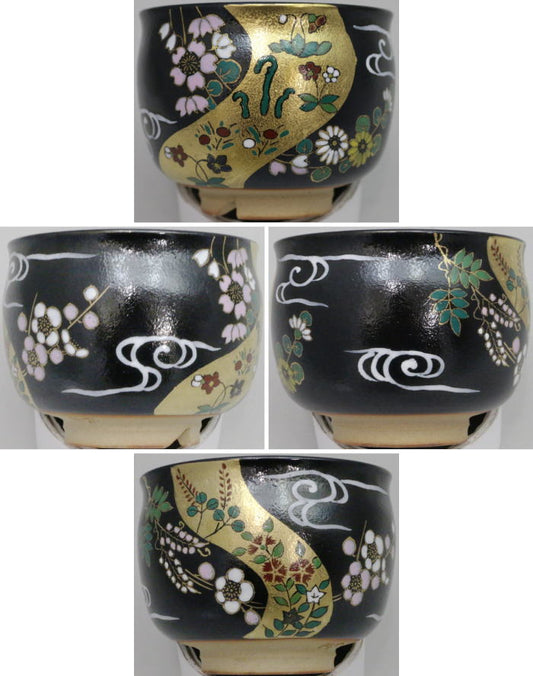 [Tea utensils/tea ceremony tools Matcha tea bowl] Copy of Ninsei, weeping cherry blossom, black interior, made by Shoka Kato