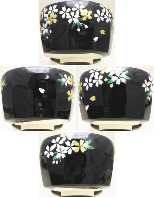 〇 [Tea utensils/tea ceremony tools Matcha tea bowl] Black Ninsei Yoshino cherry (Yoshinoyama) Made by Gozan Kato