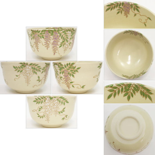 〇 [Tea utensils/tea ceremony tools Matcha tea bowl] Copy of Ninsei Wisteria flower Made by Eika Miyaji