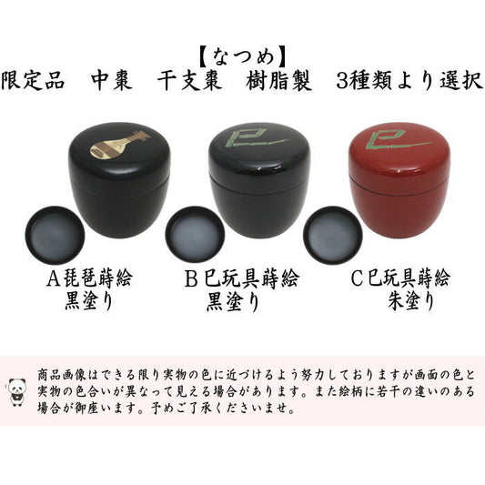 ◎【茶器/茶道具 なつめ(お薄器) 干支「巳」】 限定品 干支棗 中棗 琵琶蒔絵 黒塗り又は巳玩具蒔絵 黒塗り又は巳玩具蒔絵 朱塗り 樹脂製 3種類より選択 (干支巳 御題夢) (干支 巳・蛇)