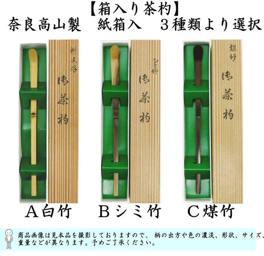 [Tea utensils/tea ceremony tools, tea scoop] Top-grade white bamboo or old bamboo (blue and white style) or soot bamboo Made in Takayama, Nara Comes in a paper box
