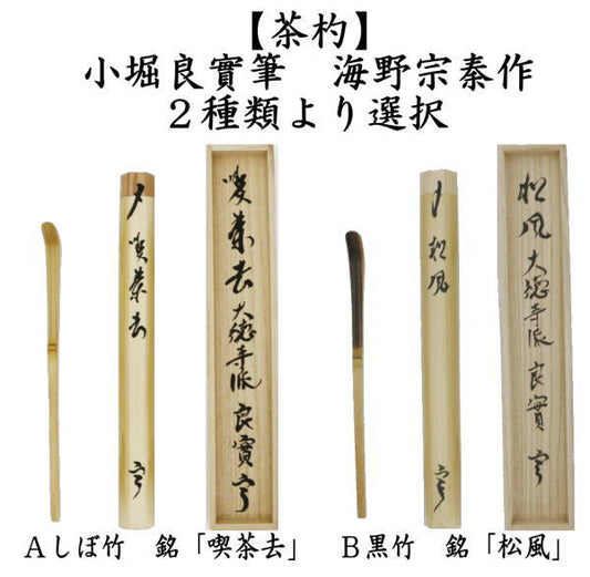[Tea utensils/tea ceremony tools, tea scoop with name] Choose from two types: Shibo bamboo, with the name "Kissakyo" or Kurotake, with the name "Matsukaze" by Kobori Yoshimi and made by Unno Soshin