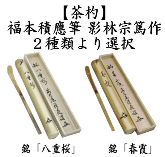 [Tea utensils/tea ceremony tools, tea scoop with name] Named "Yaezakura" or "Shunkasumi" Calligraphed by Fukumoto Tsuneo, made by Kagebayashi Souatsu