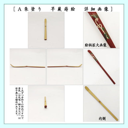 [Tea utensils/tea ceremony tools, tea scoop] Maki-e tea scoop, vermilion lacquer, Hayawara maki-e or vermilion lacquer, Mikoshi maki-e or black lacquer, Warabi wave maki-e or blue lacquer, Nami chidori maki-e, Japanese-made tea scoop, choose from 4 types