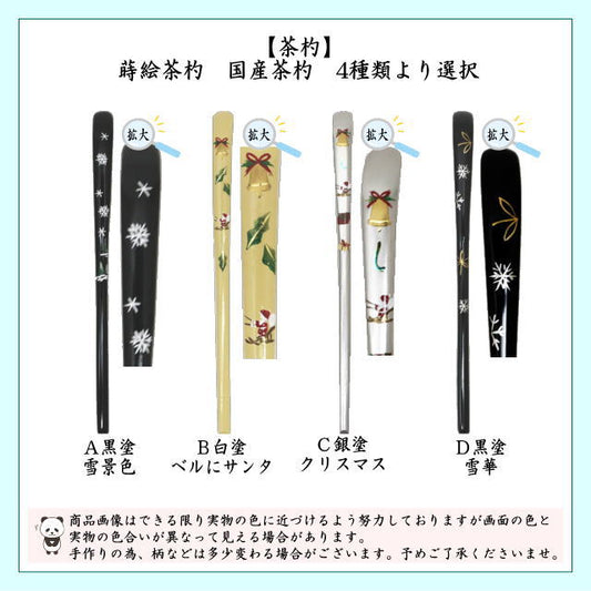 [Tea utensils/tea ceremony tools, tea scoop] Maki-e tea scoop, black lacquer, snow scene or white lacquer, bell with Santa or silver lacquer, Christmas or black lacquer, snow flower, made in Ikoma, Nara, choose from 4 types