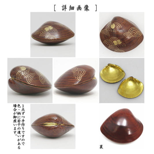 [Tea utensils/tea ceremony tools, incense holder] Clam shell, wave lacquer, gold leaf on the inside, made by Arai Kiho