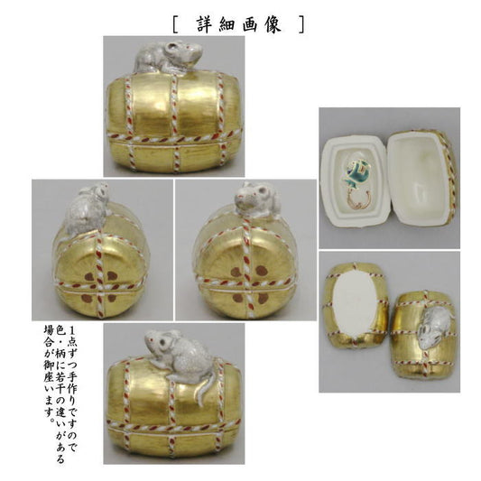 [Tea utensils/Tea ceremony tools, incense holder] Copy of Ninsei, straw bag with mice, made by Mitsuru Tezuka, Kachogama (rice bag with mice)