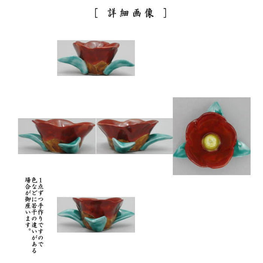 [Tea utensils/Tea ceremony utensils lid rest] Color painting camellia (tsubaki/yabu camellia) by Shoami Takano, Warakuan