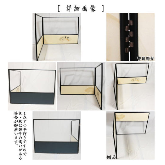 [Tea utensils/tea ceremony tools Furosaki folding screen] Furosaki 2 shaku 4 sun, fully covered, white back, black painted frame, Rikyu plum or Koma Tsunagi or Karamatsu or Unpo, Kyoma or Edoma, can be used with rofuro