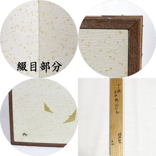 [Tea utensils/tea ceremony tools Furosaki folding screen] Furosaki 1 shaku 5 sun, mulberry rim, sandalwood paper covering, thousand cranes pattern, with Iguchi Kaisen, made by Inagaki