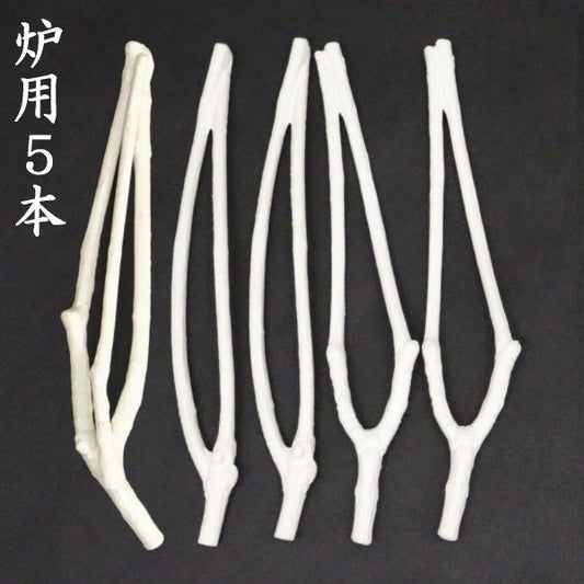 [Tea utensils/tea ceremony tools charcoal sticks] Non-flammable charcoal sticks, 1 tri-pronged stick and 4 bi-pronged sticks, set of 5, for Urasenke, ceramic, for use with hearth or furo,